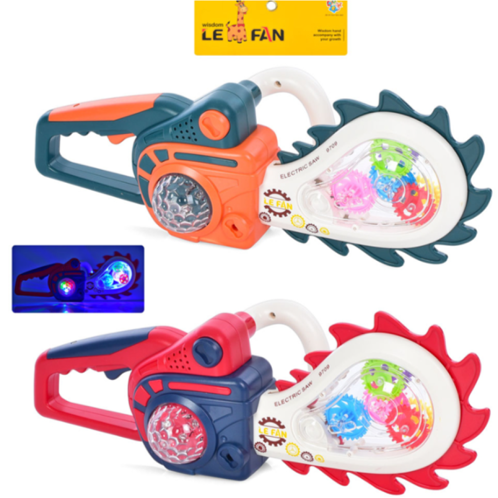 Іграшкова бензопила 9709C — інтерактивна дитяча іграшка, що імітує справжню пилку. Виготовлена з міцного пластику, довжина 32 см, легка для дитячих рук. Містить рухомі елементи, які обертаються або рухаються під час гри, створюючи ефект роботи інструменту. При натисканні кнопки включаються звукові ефекти для більш реалістичної гри. Ергономічна ручка та безпечна форма дозволяють дитині комфортно утримувати пилу і розігрувати сценарії «будівництво», «лісоруб» або «ремонт». Підійде для сюжетно‑рольових ігор дітям від 3 років.