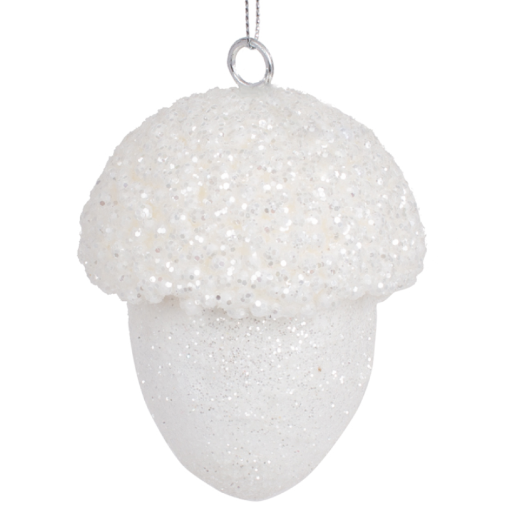 • Ялинкова прикраса «Жолудь» 9 см — декоративна новорічна іграшка, білий сніжний колір