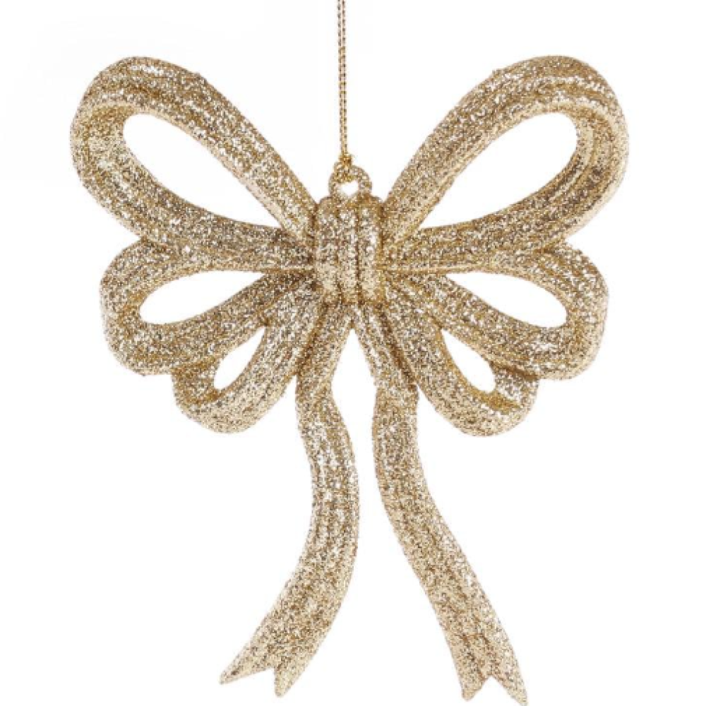 Ялинкова прикраса 788-510 Бант — стильний елемент новорічного декору у витонченому кольорі шампань. Розмір 13×11 см робить її помітною, але легкою та зручною у розміщенні на ялинці, гірляндах або святкових композиціях. Легка, безпечна та довговічна прикраса для вашого інтер’єру.