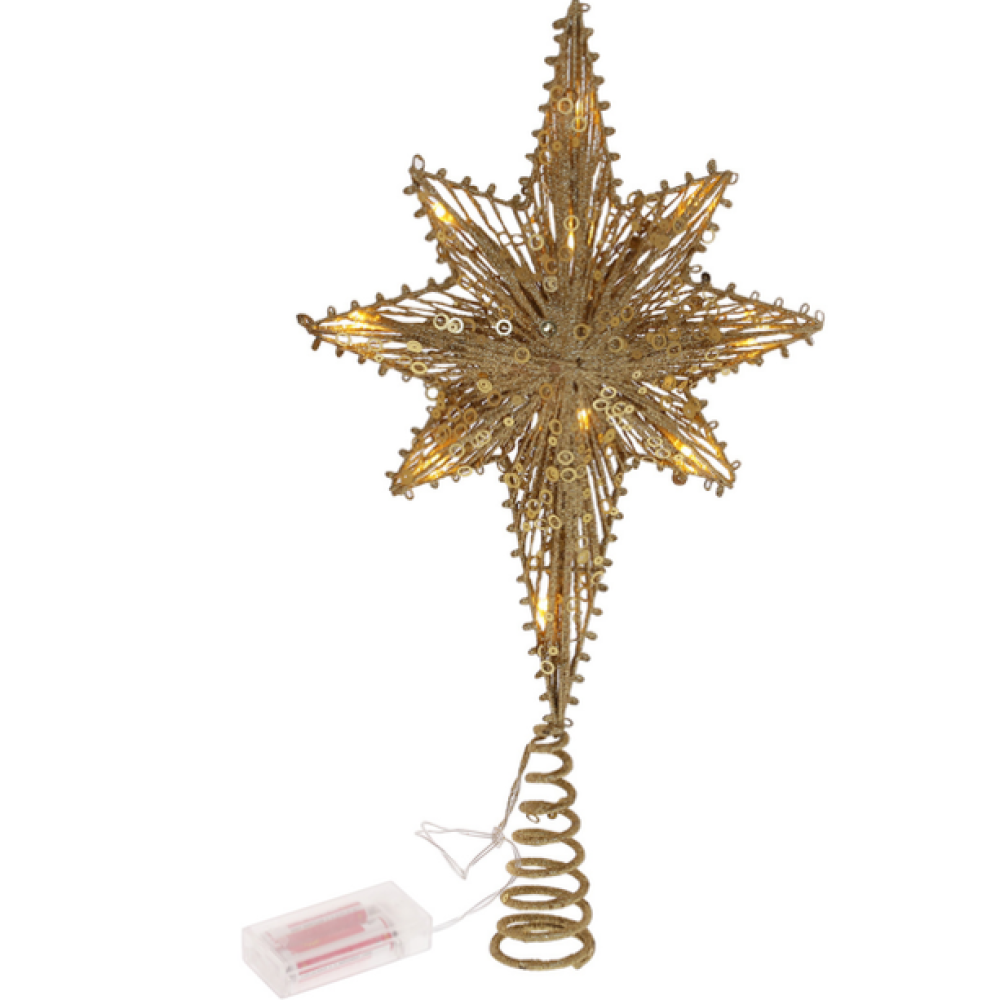 Новорічний декор Верхівка на ялинку 12-371 Зірка Золото з підсвіткою