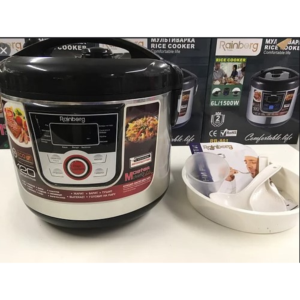 Мультиварка Rainberg RB-801, 1500W, 12 програм, 6L - це простий і зрозумілий кухонний прилад, який призначений для готування страв різними способами обробки. Управління електронне, і дуже просте - для кожної програми існує власна кнопка, інформація, а також годинник відображаються на рідкокристалічному дисплеї.