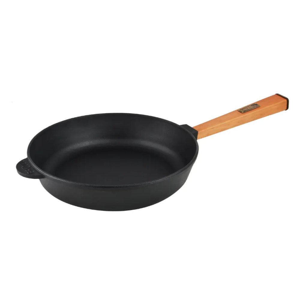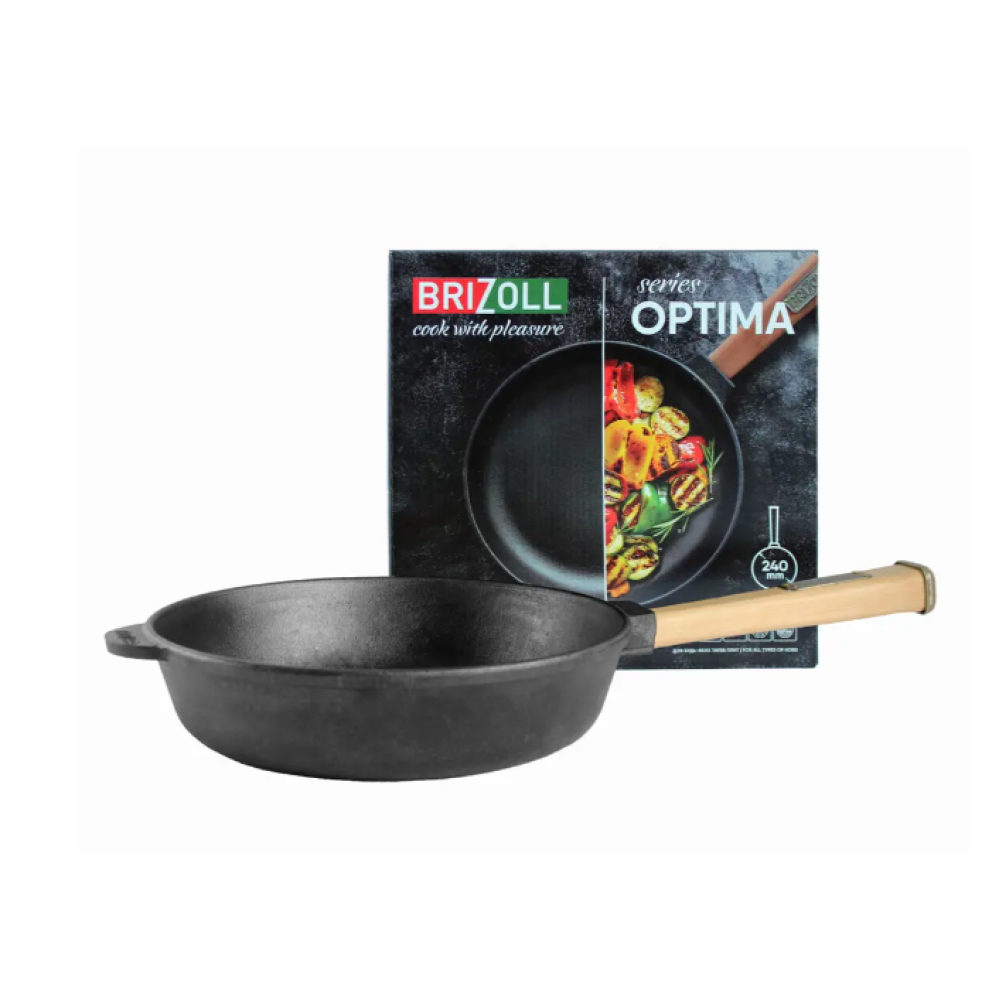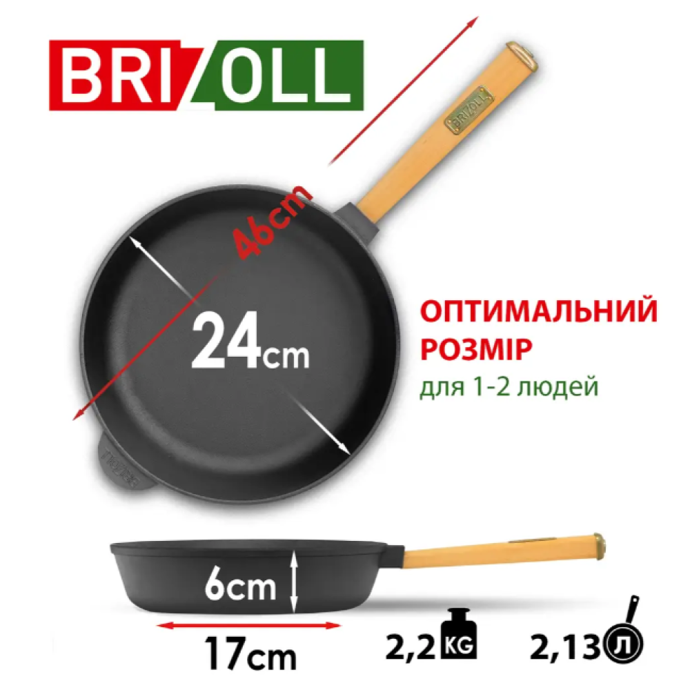 При виготовленні чавунного посуду використовується запатентований процес термообробки, що підвищує стійкість посуду до іржі. Завдяки запіканню масла в чавунних порах, сковорода набуває природне антипригарне покриття. Чавунні сковороди ТМ Brizoll при виготовленні покриваються рослинним соєвим маслом.
