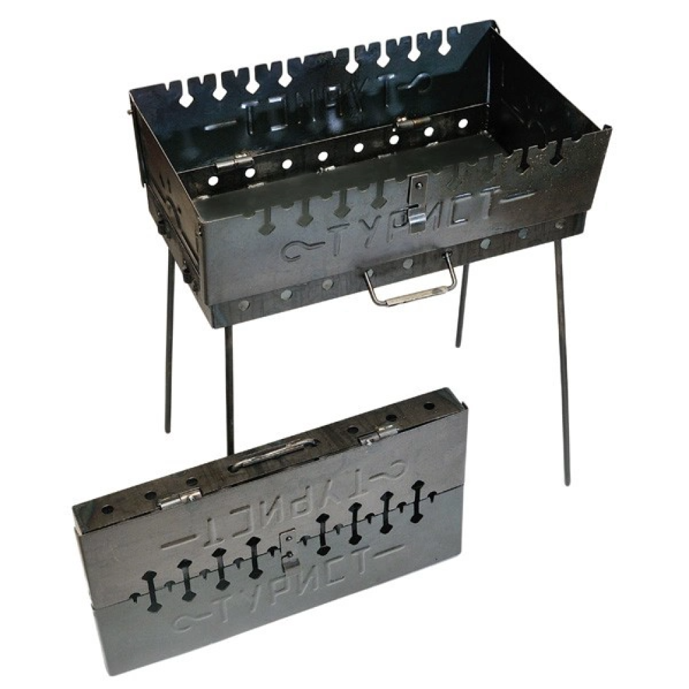 Мангал разборный «Турист» на 10 шампуров - один из самых продаваемых мангалов, ведь на этом мангале удобно разместить как 10 шампуров, так и решетку барбекю любого размера.