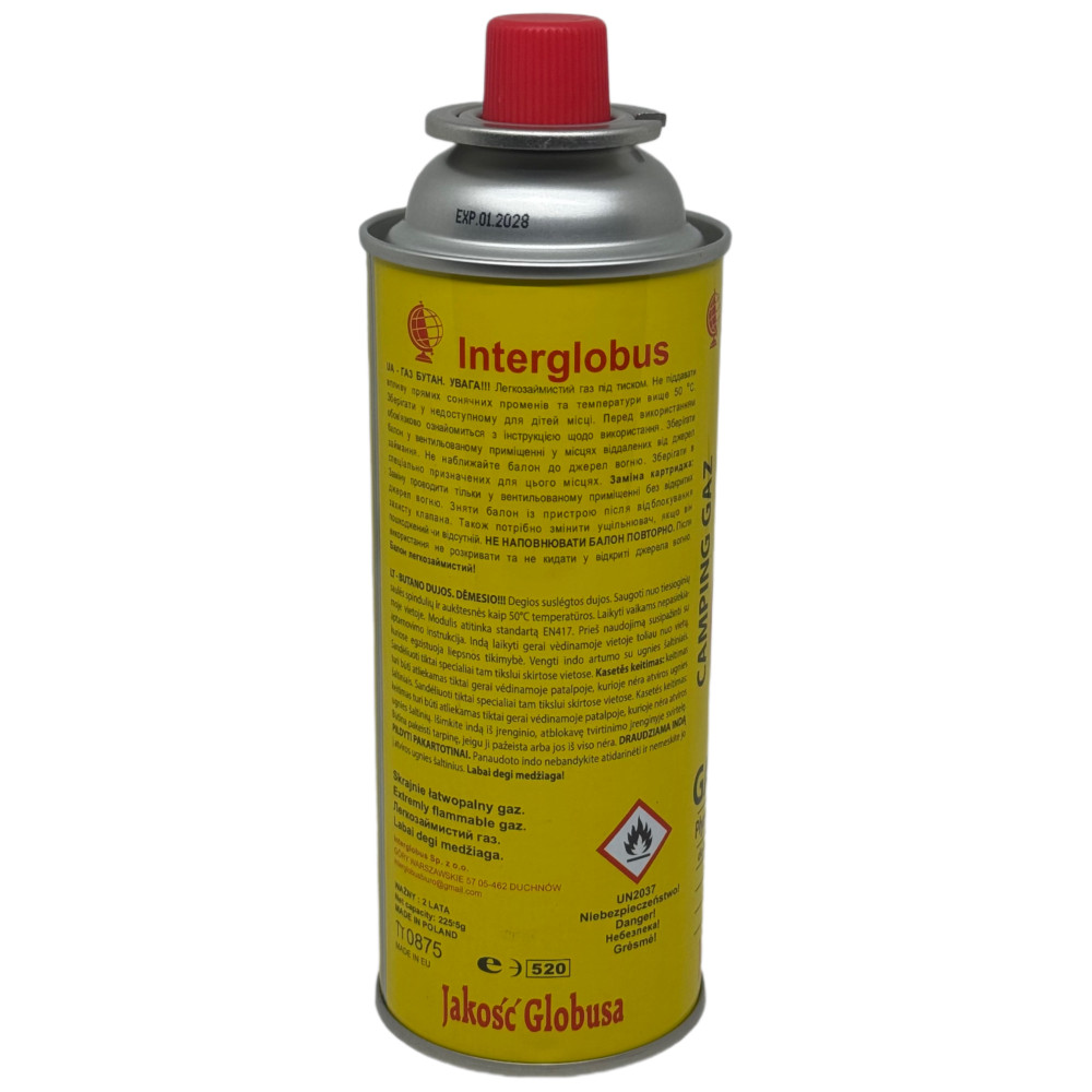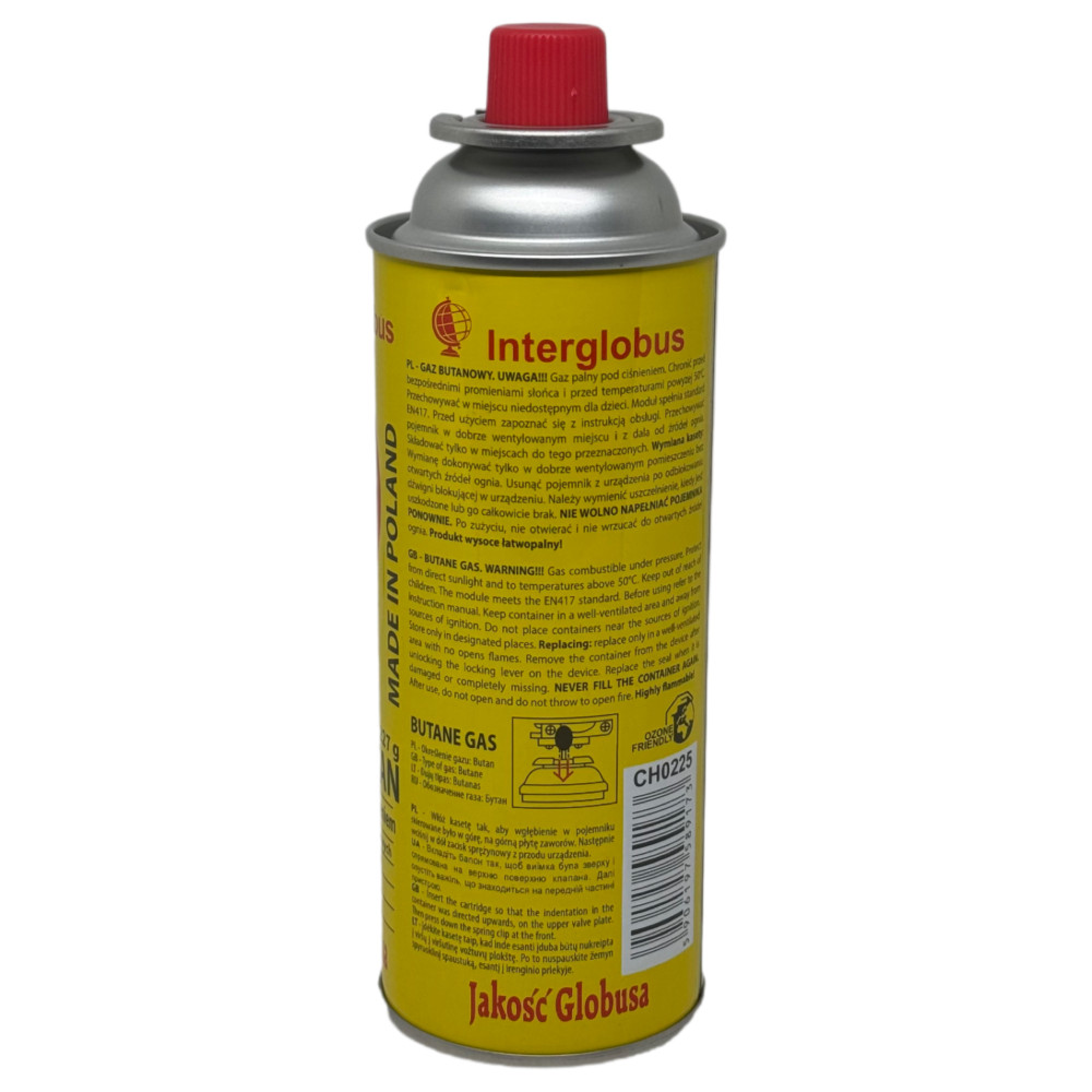 Газовий балон Inter Globus 227 г — це універсальний змінний клапанний картридж для туристичних пальників та портативних газових плит. Він забезпечує стабільне горіння завдяки якісній суміші пропан-бутан, має міцний металевий корпус і зручне стандартне з’єднання, сумісне з більшістю похідного обладнання. Підходить для туризму, кемпінгу, пікніків та подорожей.